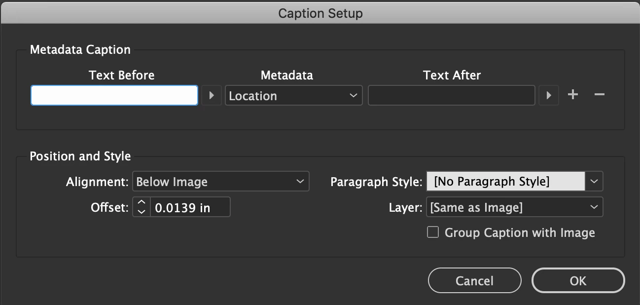 I am struggling to show a GPS location stored in XMP (in field GPS Data > Position) as part of Live Caption. I see the GPS data in the linked file in inDesign XMP panel.
