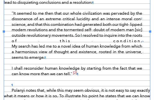 I have an author's quotation made up of 3 small paragraphs. In 01 I used my paragraph style for quotations. However, I don't want a blank line between the paragraphs so I used a soft return and got what is shown in 02, which is not what I want. The paragraph style has justification set to Left Justify.