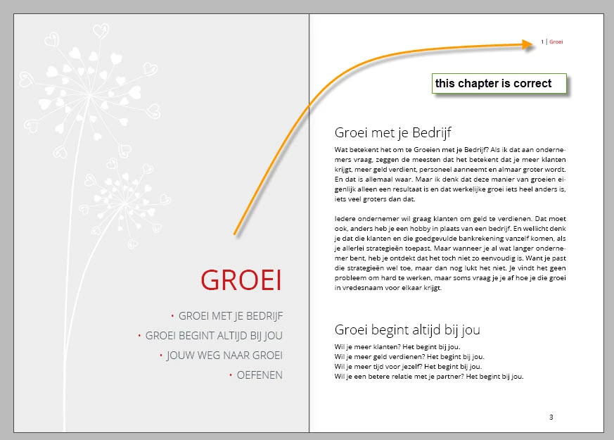 I'm designing the lay out for a book and set a text variable to match the current chapter number and chapter title. Now for the first chapter that works, but the second is not working out; it doesn't change to the second chapter and instead it keeps displaying the first. The style of the chapter title is the same as the first.