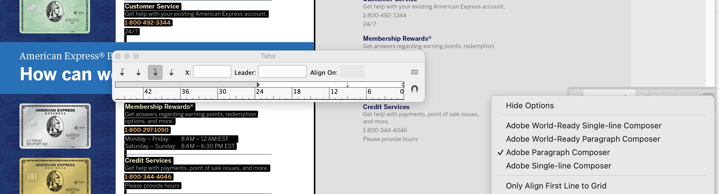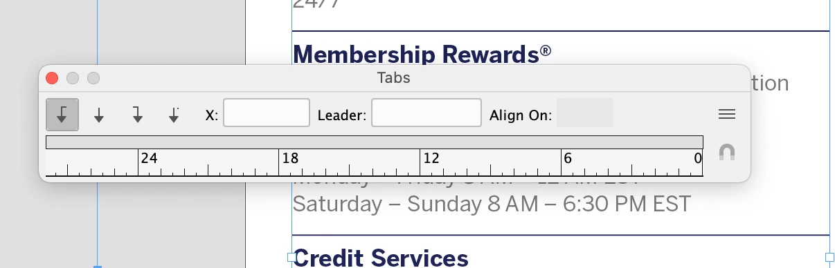 2) When I try to set tabs they set R-t-L.
