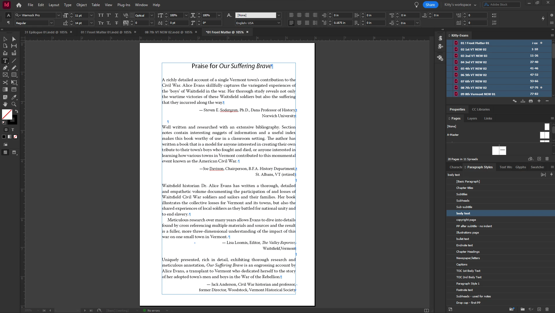 Oddly, on some paragraphs it works, others -- not. For example, when putting together a "Praise for..." for a book, trying to use the space after for the author name -- 2 of the 4 worked, 2 didn't. This has been throughout this book. Ideas?