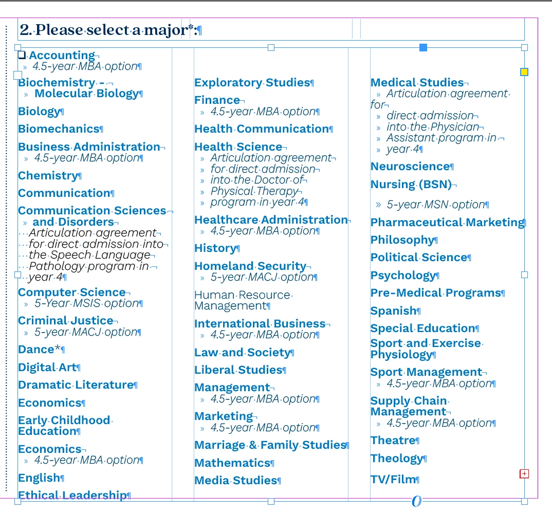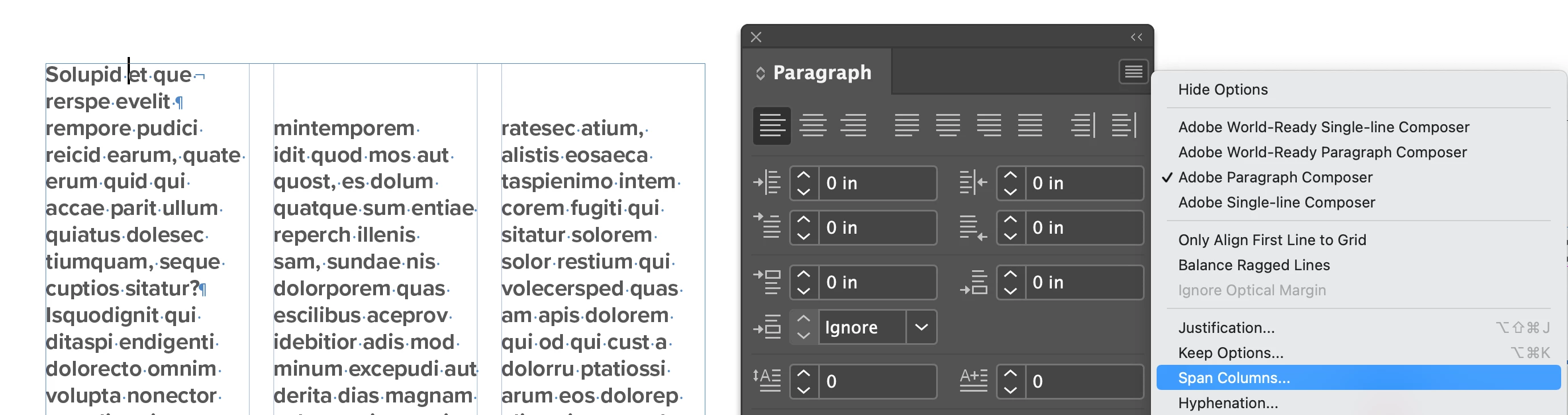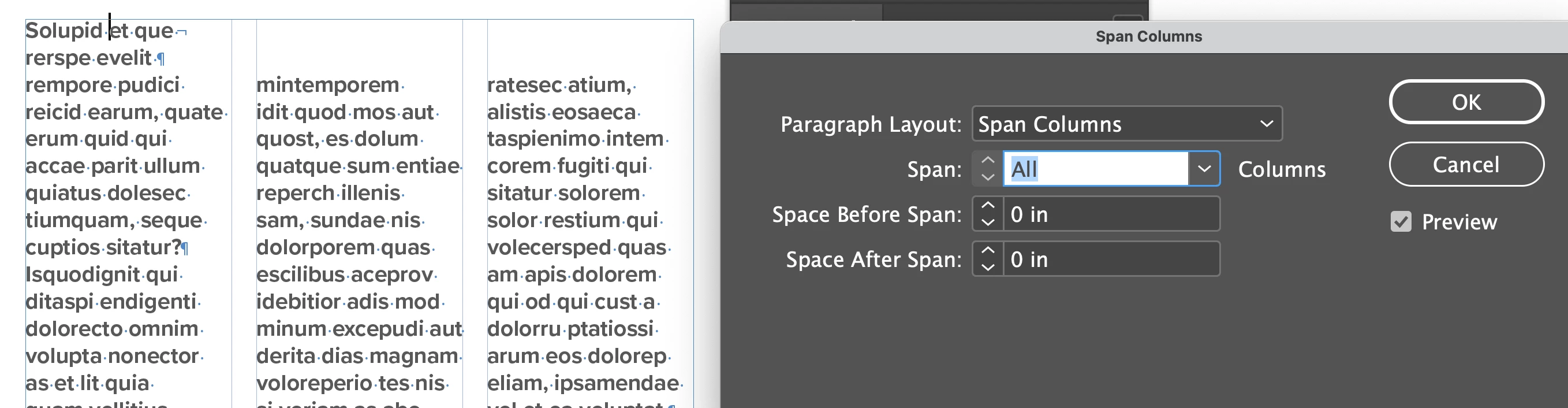 Hello, I am reusing a file from a previous designer that worked on this file. I'm updating it to the new brand and I'm currently working on the text frame column options. For some reason, I cannot figure why there is additional space at the top of the second and third columns. Any solution to push the text up? I don't think there's padding? (Yes, there's some editing to the text needing to be done yet)