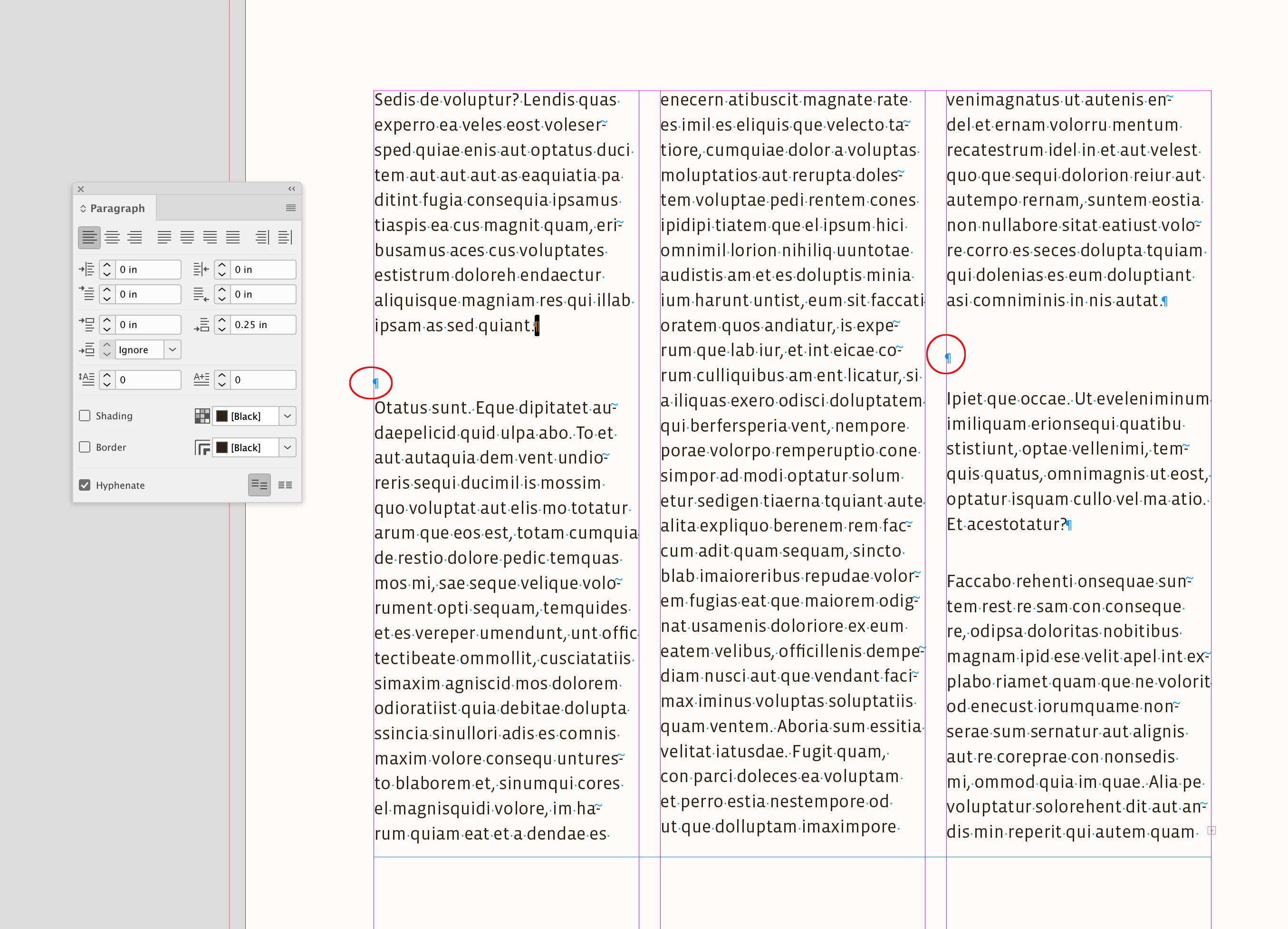 Hi @MikePost , Can you show a capture with Hidden Characters turned on? It’s not likely an align to baseline grid setting because I can see in your capture, your text colunms are not aligned to the same baseline.