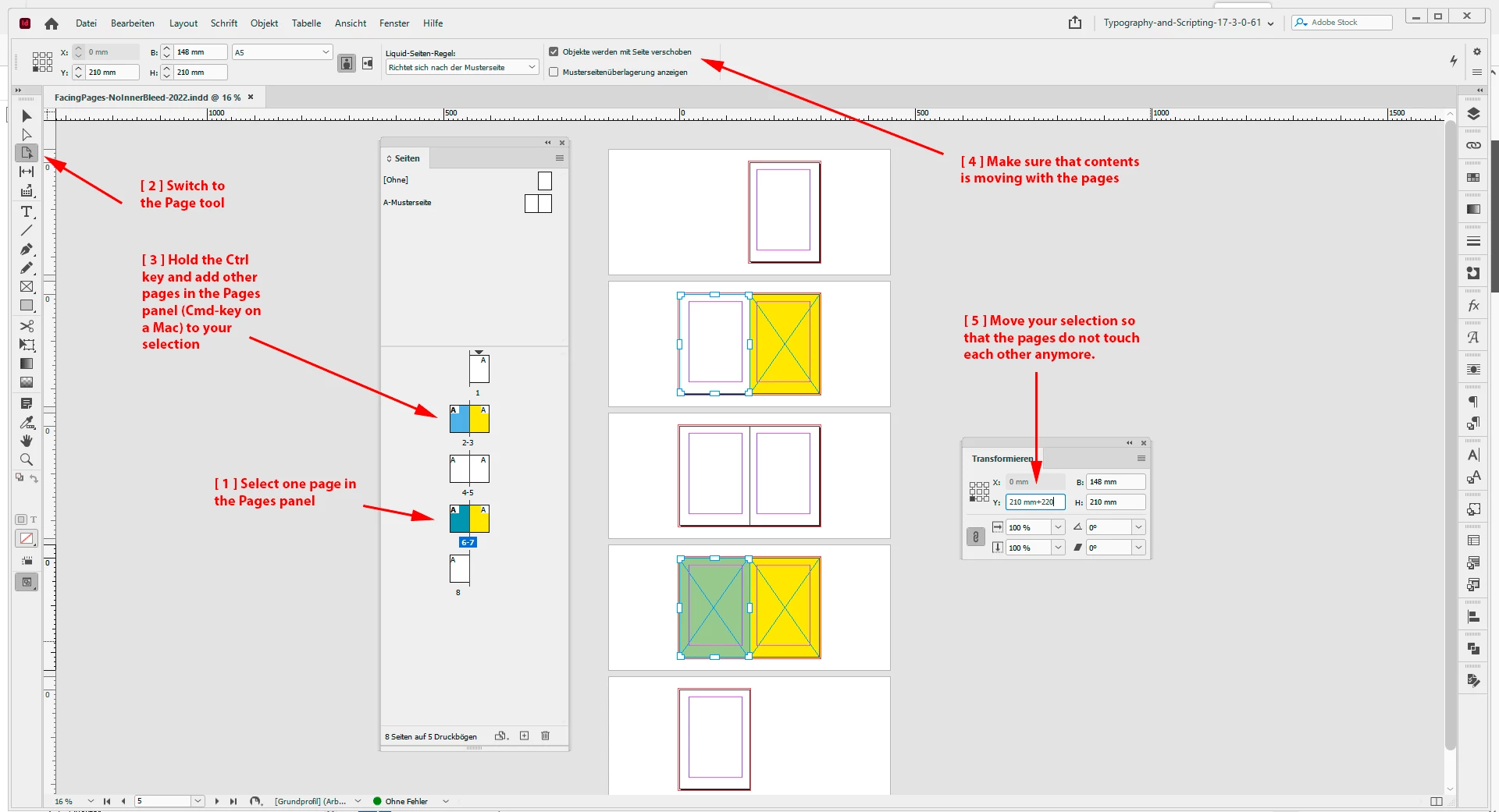 I'm trying to split up a 48 page booklet into single pages from 2-page spreads. The printer need bleeds on all 4 sides of each page, and with it set up as spreads there are only bleeds on the three outer sides. Any help would be appreciated. Thanks!