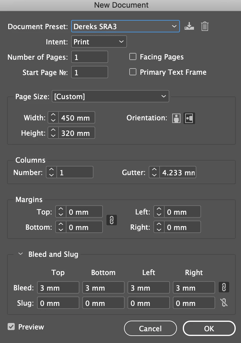 Having said that, the normal way of working, as you know, is to output your document as a PDF in single pages, for the printer to impose for SRA3, or whatever sheet size suits the printing machine (unless you were producing an A3 poster).