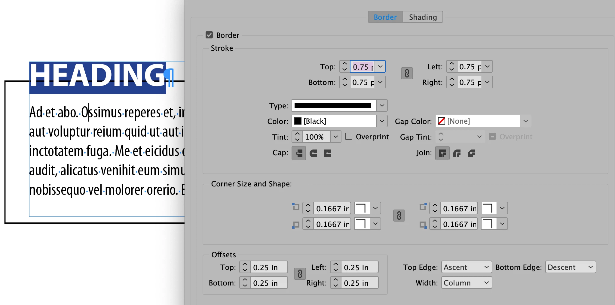 I have a paragraph style with a rule and is followed by another paragraph style that has an outline. The two lines generated by the two paragraph styles are intersecting, but they're not stacked in the correct order (as visible in the image attached below). Is there a way to control the stacking order of elements generated by paragraph or character styles?