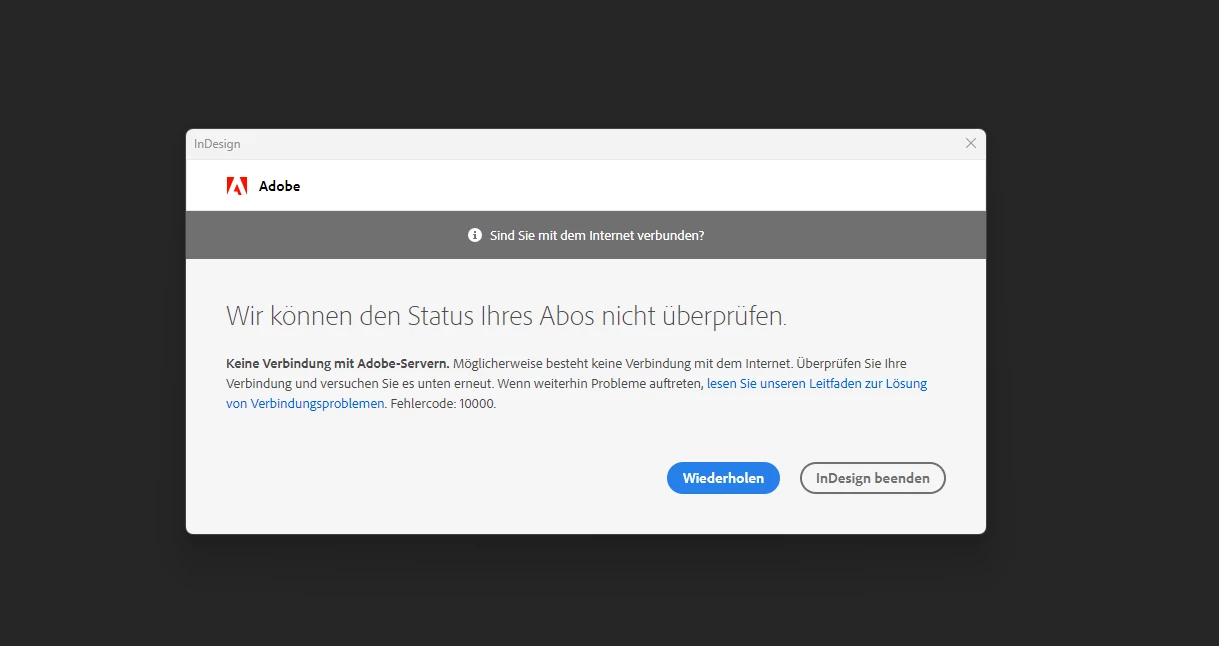 Ich wollte geestern Abend mein InDesign öffnen und ann erscheint folgende Meldung: