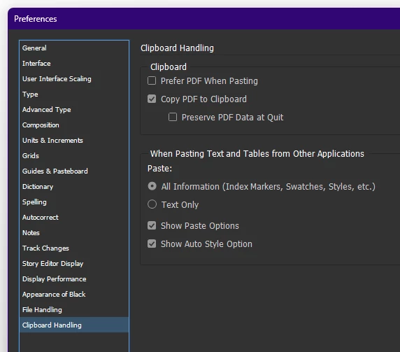 This must be a simple fix, but I have searched and cannot find how to turn this hint off.  It happens when I paste text from somewhere else into In Design.  A little box with a T in it pops up, asking me if I want to paste text only.  How can I stop that from happening?  It's an unnecessary step in my life!  🙂  Thanks!  GS