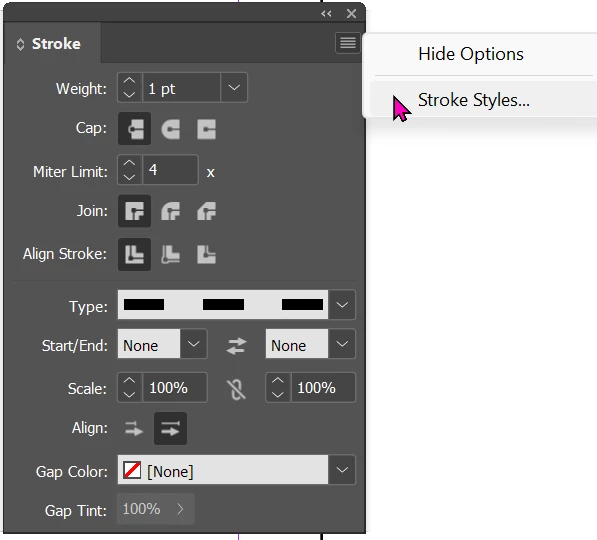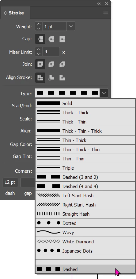 where are my dashed line gap options?