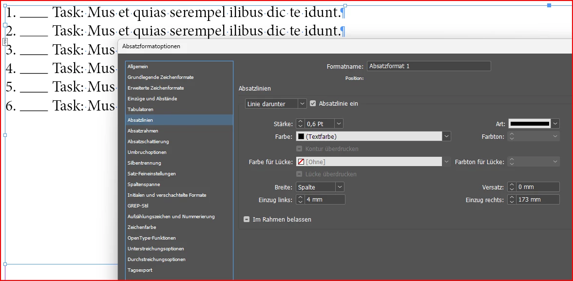 Working on a textbook and trying to create a numbered list (reader needs to put in sequential order by filling in the line before text). Font being used in Roboto Slab and the underscore has gaps between the (5) underscore lines. How can I keep the character style on the numbers but modify the underscore/line to be a solid line?