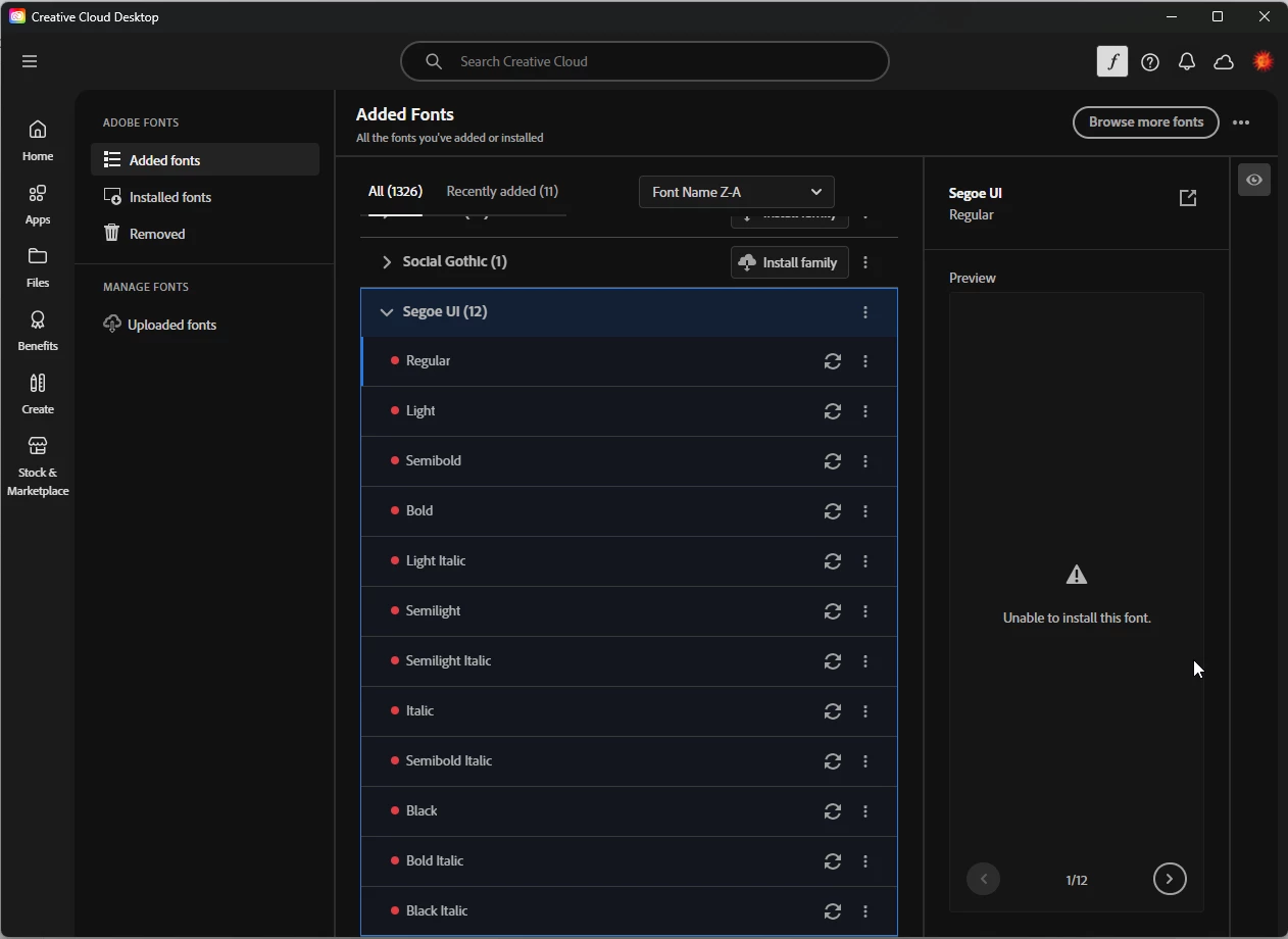 Suddenly, my InDesign is giving me 110 Pre-Flight errors, all saying that my Segoe UI font is missing. It appears in the document OK but how do I get rid of the error messages and assuage the software? Do I somehow reinstall the font?