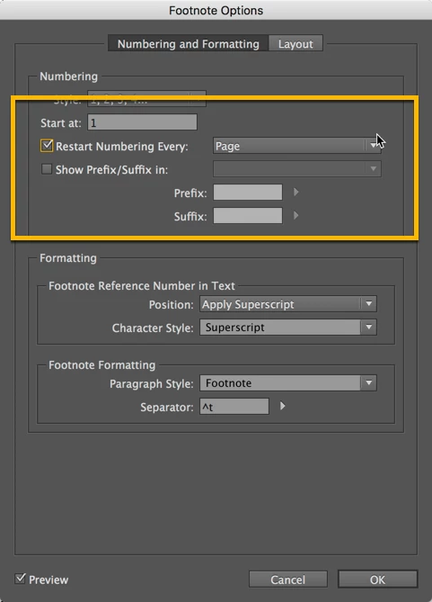 I'm working on a document with superscript endnote numbers within the text. I copied over the text from a word document, in the word document the endnote numbers ascend to the end of the chapter and then reset at the beginning of the next, however when I copied them over InDesign renumbered them so they now ascend continuously through the book. Annoyingly I didn't realise and set the book and the author now wants them back as they were.