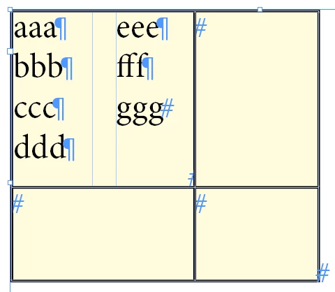 Table cell containing a multiple columned text box....