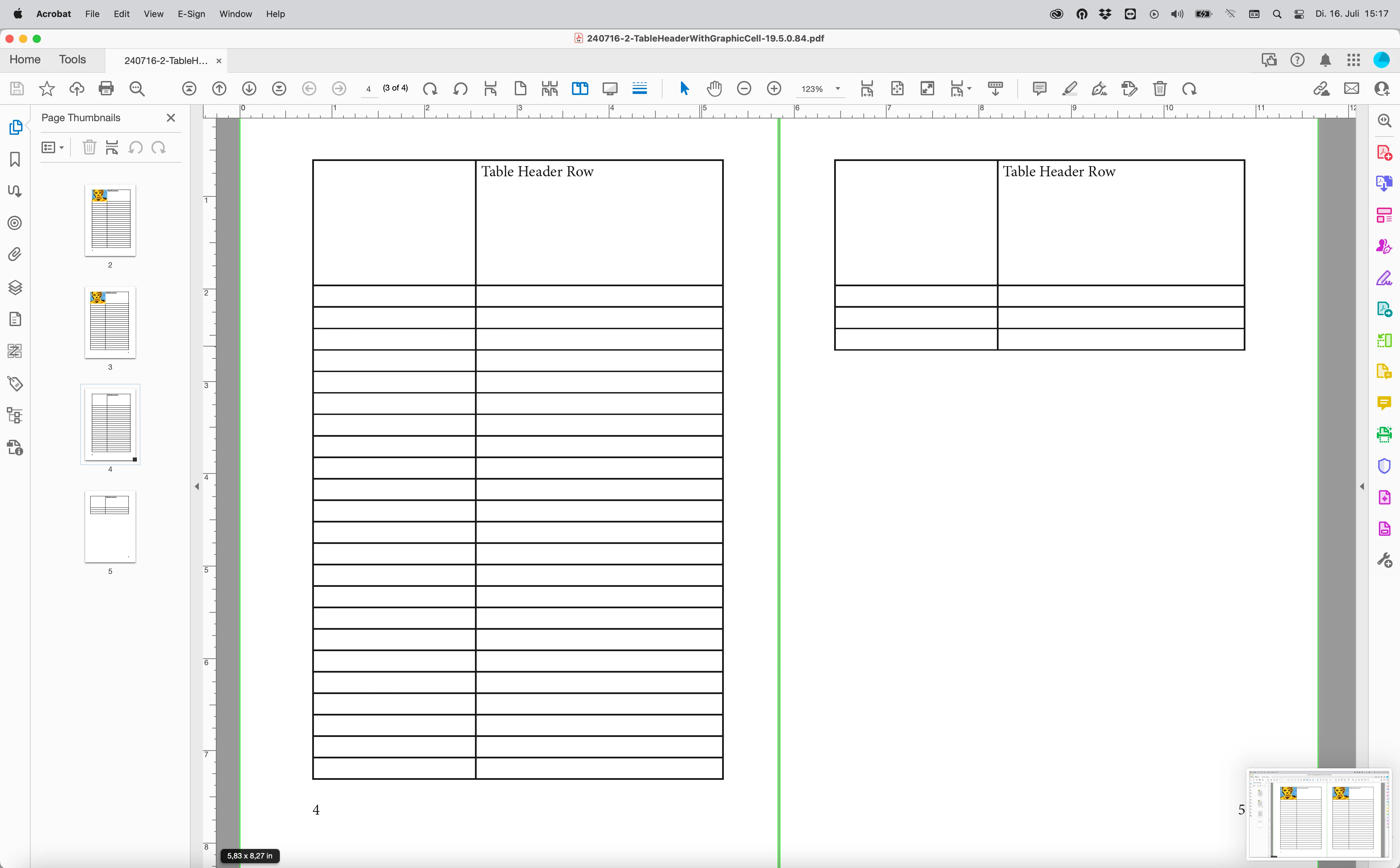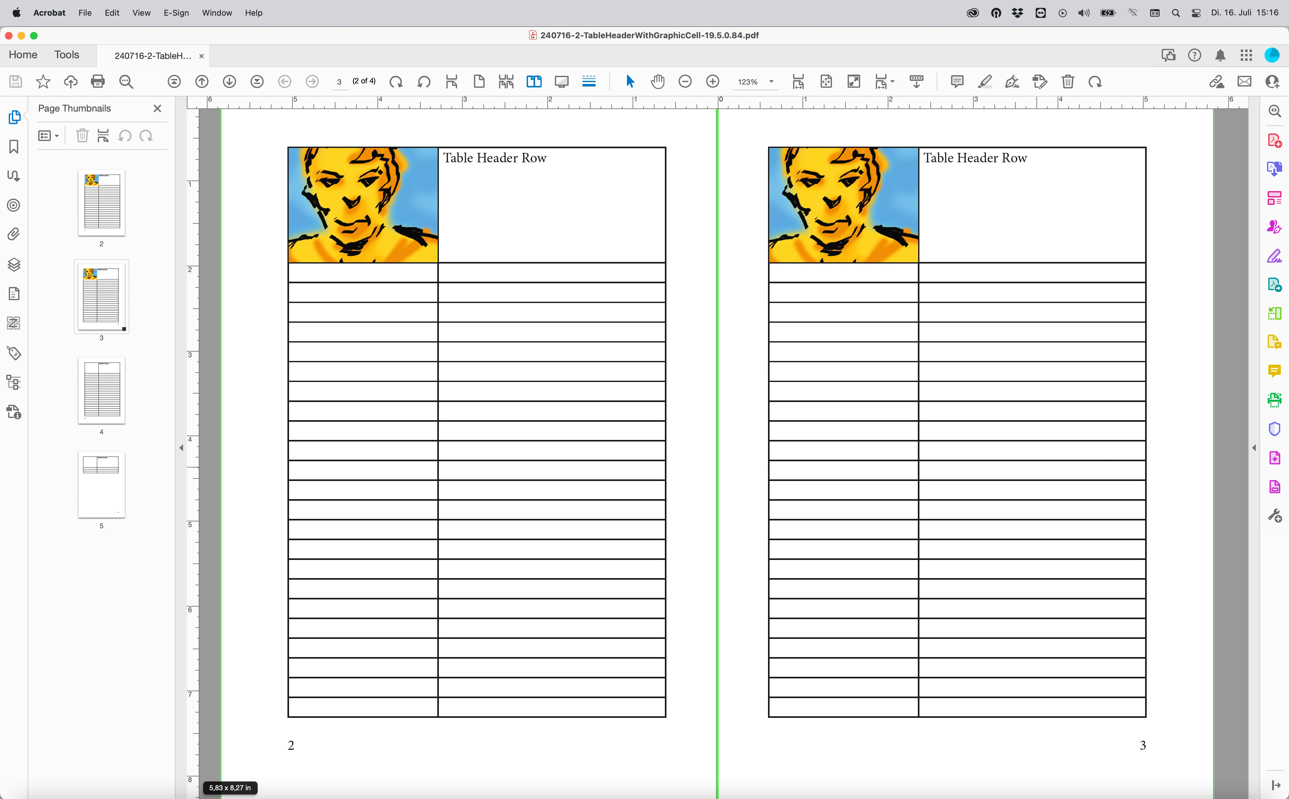 Hello Adobe Community I'm using Indesign and have created a table, the upper cells row I have done as Header and introduced an image in each cell. The header repeats in each single page after and this is fine. The problem appears when exporting in pdf where the header appears only on the first page and not on the followings. File was created with CS3 first than converted to the last indesign. Thanks alot for your help. Beppe
