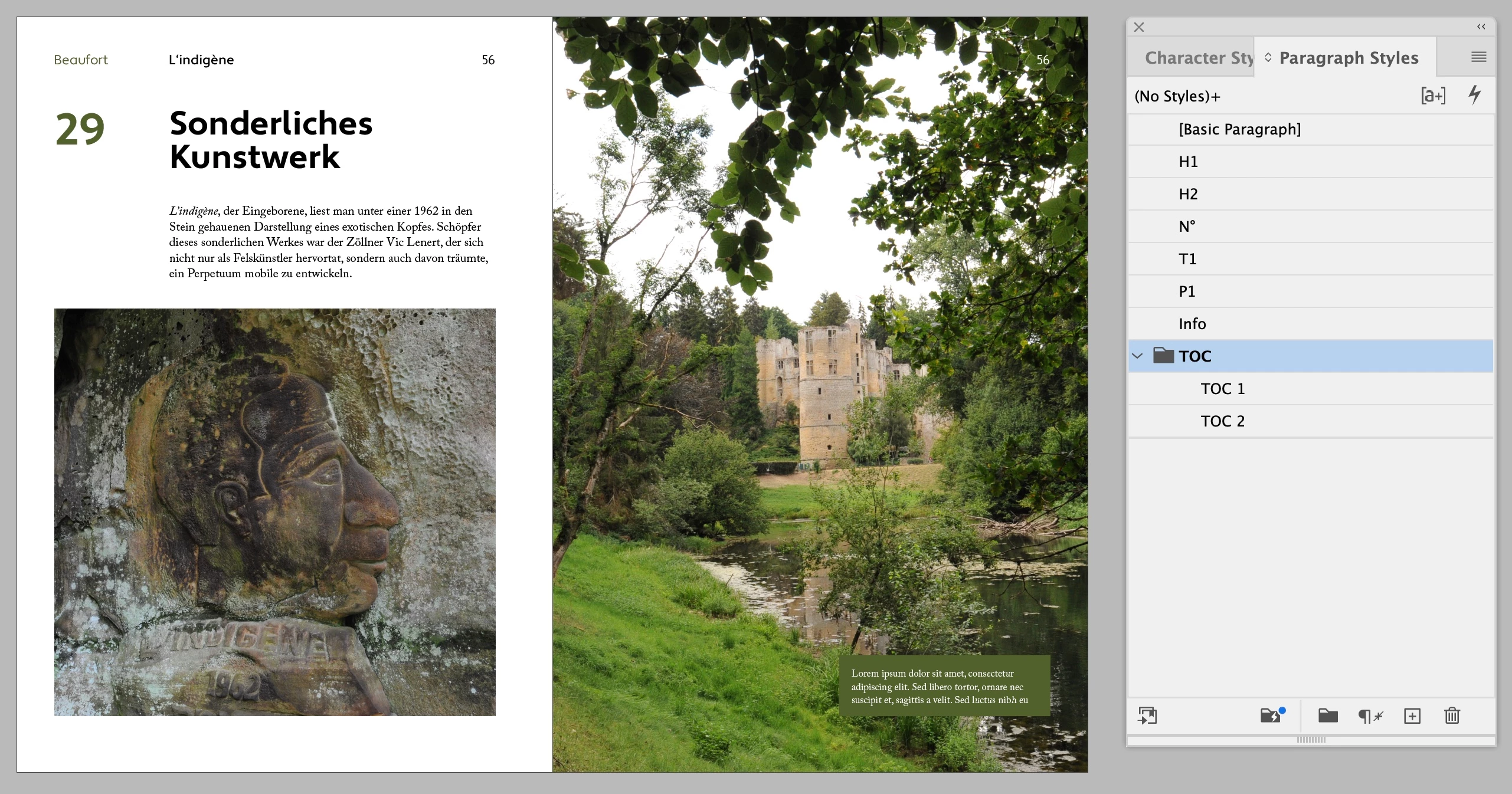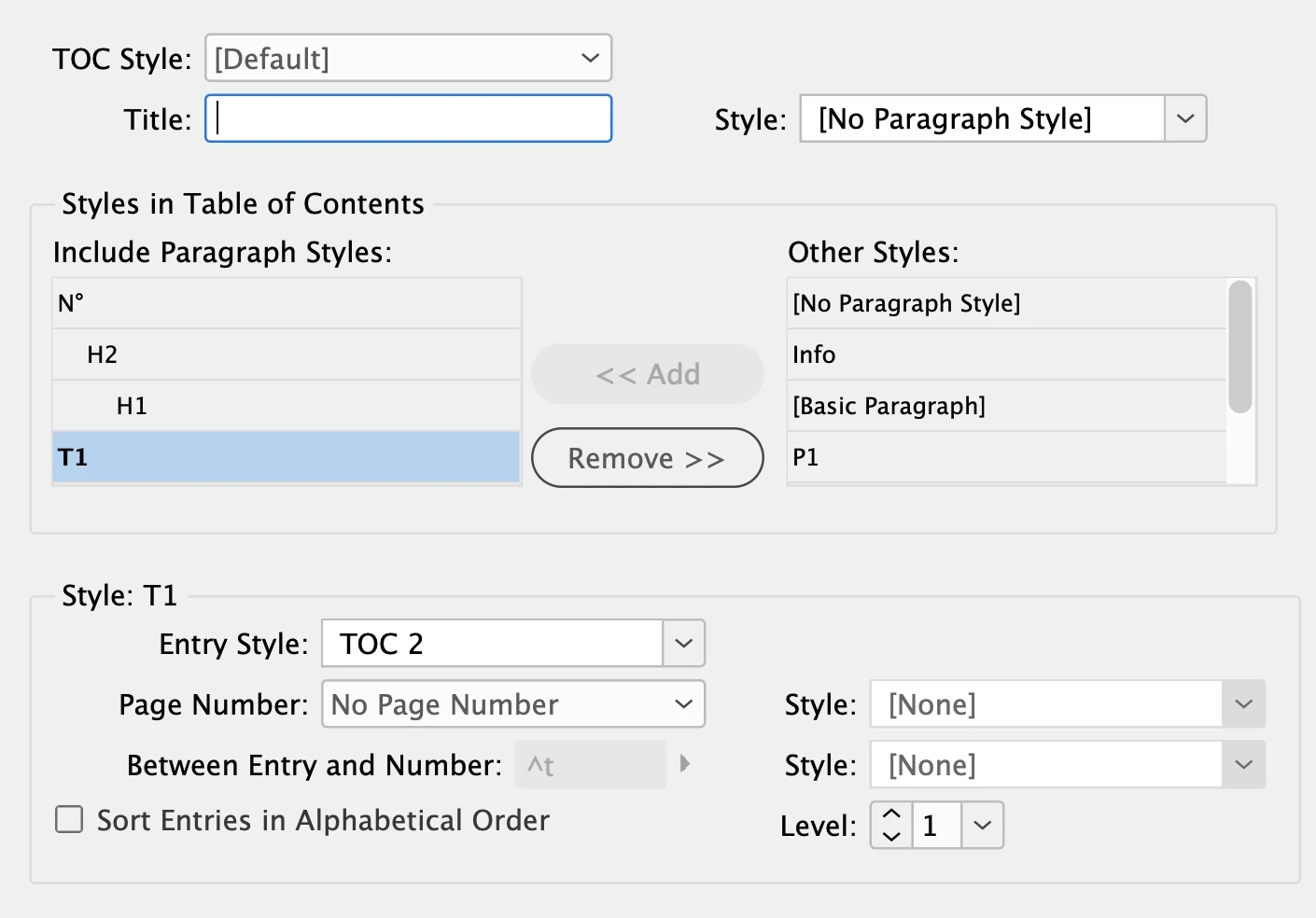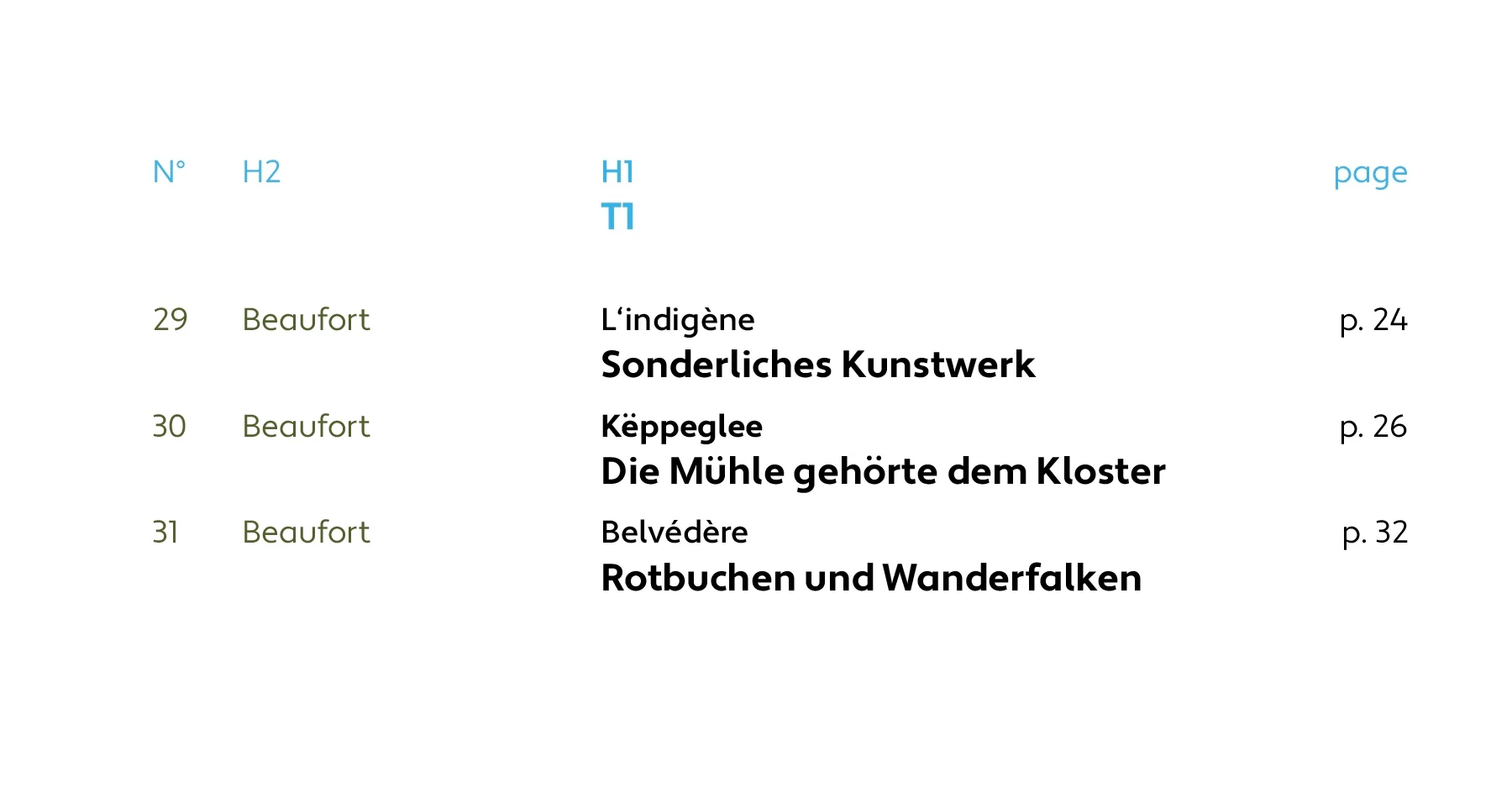 I Have 4 Pargraph Styles I want to Organise in my Table of Contents. In the TOC they should appear in a different order than on the page itself. And I want 3 of them to fit in one row (followed by the page number).