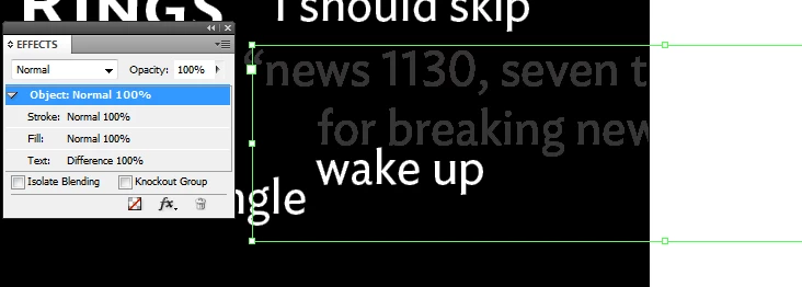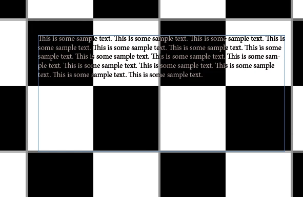 However, There are other problems with this technique, in my opinion, especially if you need to print. First is I only was able to achieve a gray text over the black background which ID and Acrobat report as having the CMYK formula 100|100|100|0, and over the white background the text becomes registration color, essentially, as it now is 100|100|100|100.