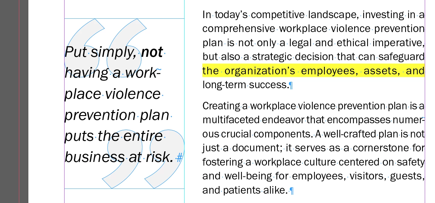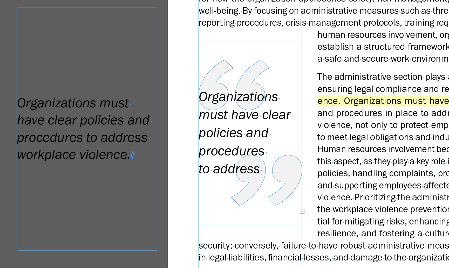I'm working in InDesign 2024 on a Mac. In the screenshot below, the text in the margins is what it should look like (the complete text). But when I slightly decrease the width of the text box to place it on the page, the text disappears: