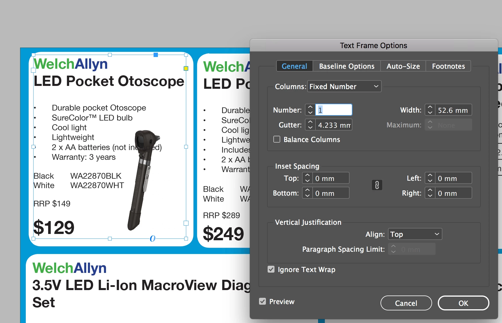 Then select all objects on the spread and turn text wrap off.