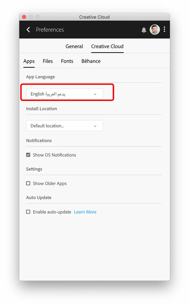 Before attempting to install a previous version, switch the language to "English يدعم العربية" from the Preferences ONLY IF you want to have an older InDesign version that supports Arabic.