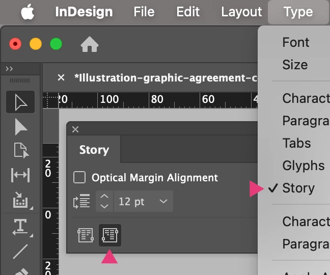 Type > Story > Right-to-Left Direction (Button)