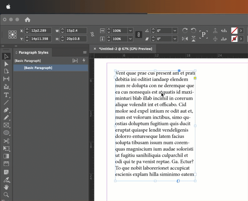 Hello, users. I have been noticing for a few months that a specific text frame within a template file will randomly begin skewing slightly right out of the lower LH corner. Has anyone seen this?