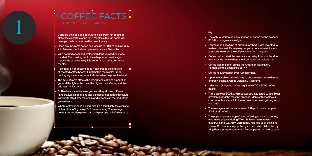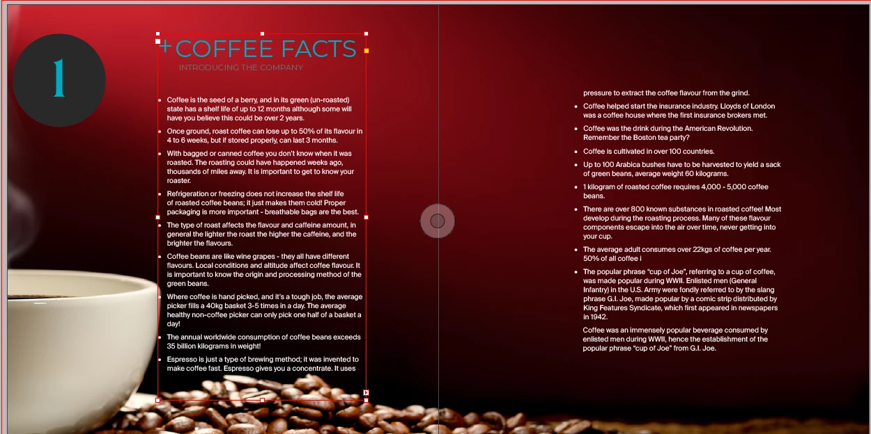 In short, when I flow the bullet points from one frame to another, a single line of the bottom line of a bullet point automatically flows to the next frame, despite there being sufficient space in the first frame to accommodate the text. I've attached a few images to try and show this. (Pls note, that I have tried this without the background image and the same thing happens)