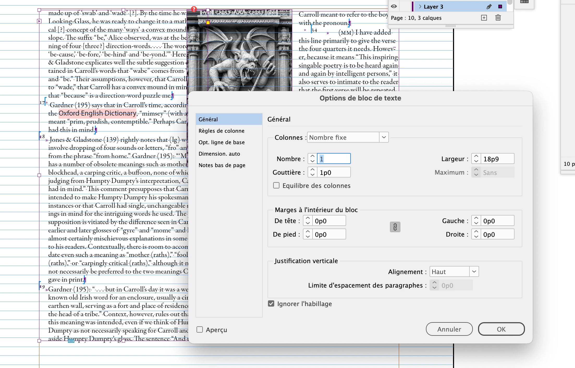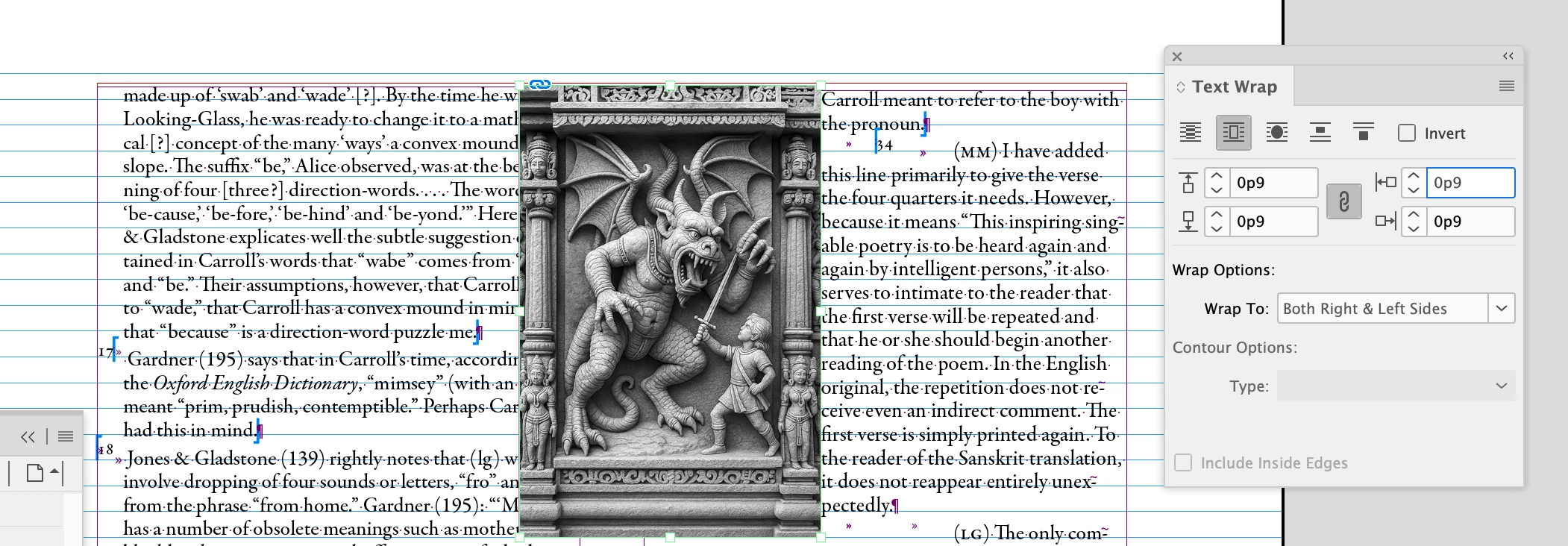 I have placed a rectangular image to fall between two columns of wrappiing text. The text will not wrap. The object has been brought to the front. The screen shot attached shows the page and the text wrap box.