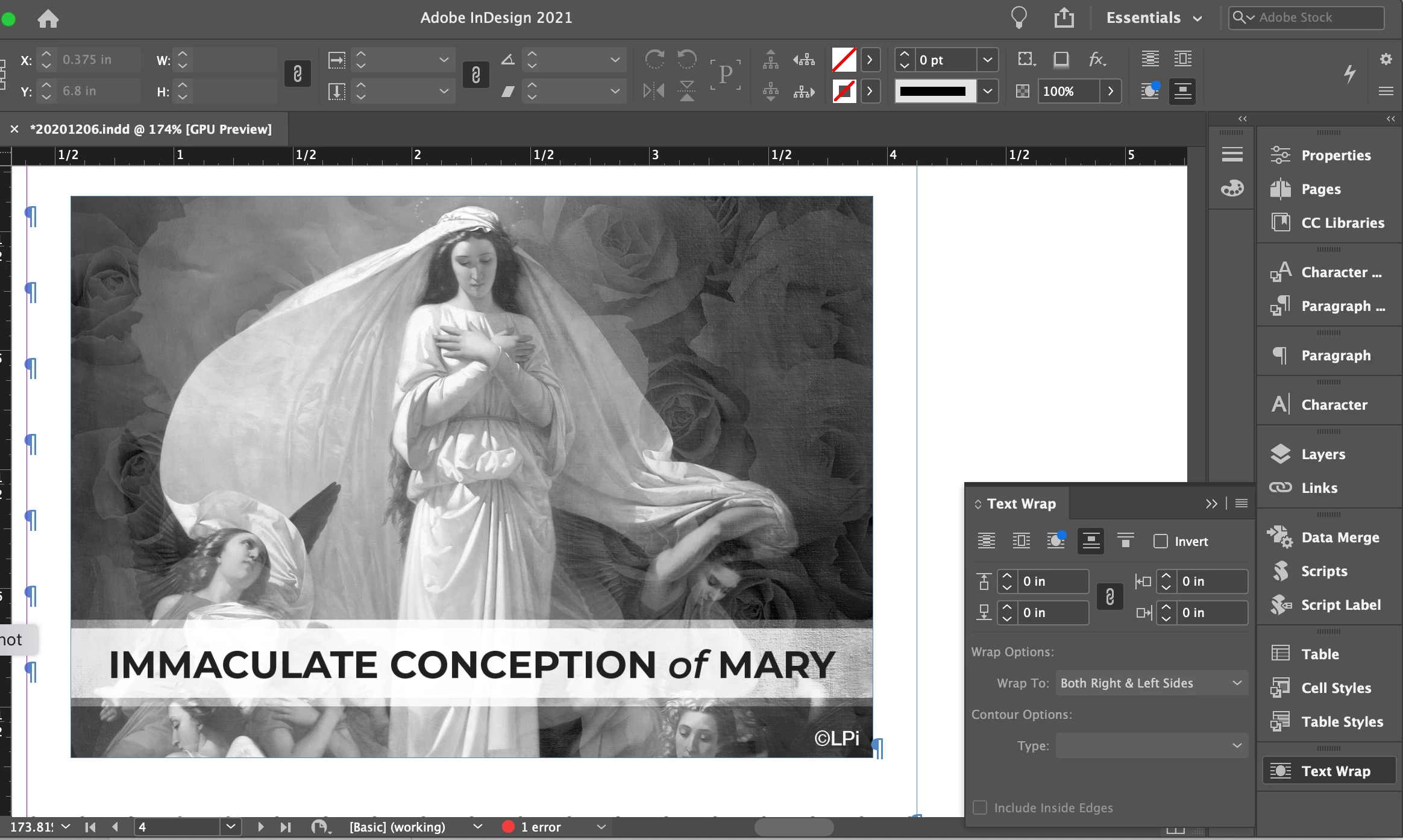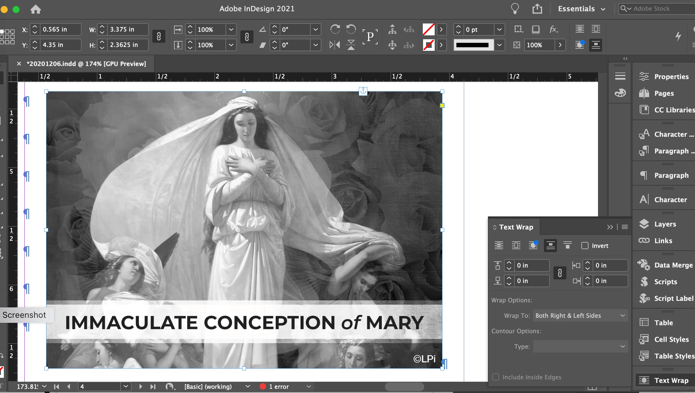 I recently started using InDesign 2021 (v 16.0). It seems that Text Wrap is not working. I paste an image into my doc but none of the text wrap options work. I can click on them in the dialog box, but nothing happens. I can't get it to behave other than "no text wrap". If I take the same image, using InDesign 2020 (v 15.1.3.302), everything works as expected. Am I missing something? I checked to make sure the composition preferences are the same in both versions. If anyone has any suggestions, let me know. Thanks!