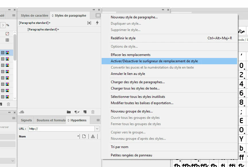 "Mettre en évidence les remplacements de style de caractère et de paragraphe"