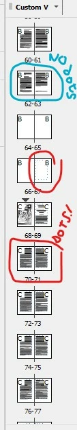 I notice this thing in the Pages window, but I don't get what it means. Some pages have a faint dotted line around the text boxes, and some don't. It must mean something. Have I done something wrong when I placed the text into the master text pages? Is that why it is slow? Could someone please help out and explain what the dotted lines mean? (Do I have to create a "book" file for a document this size?)
