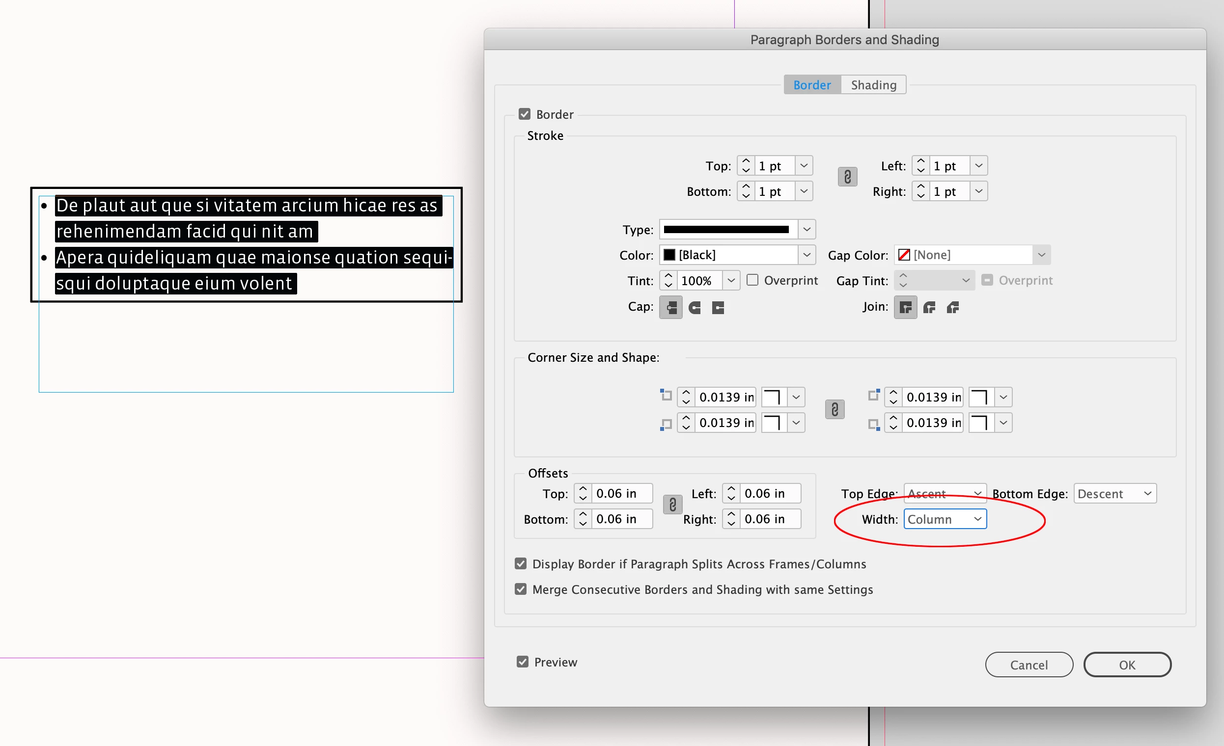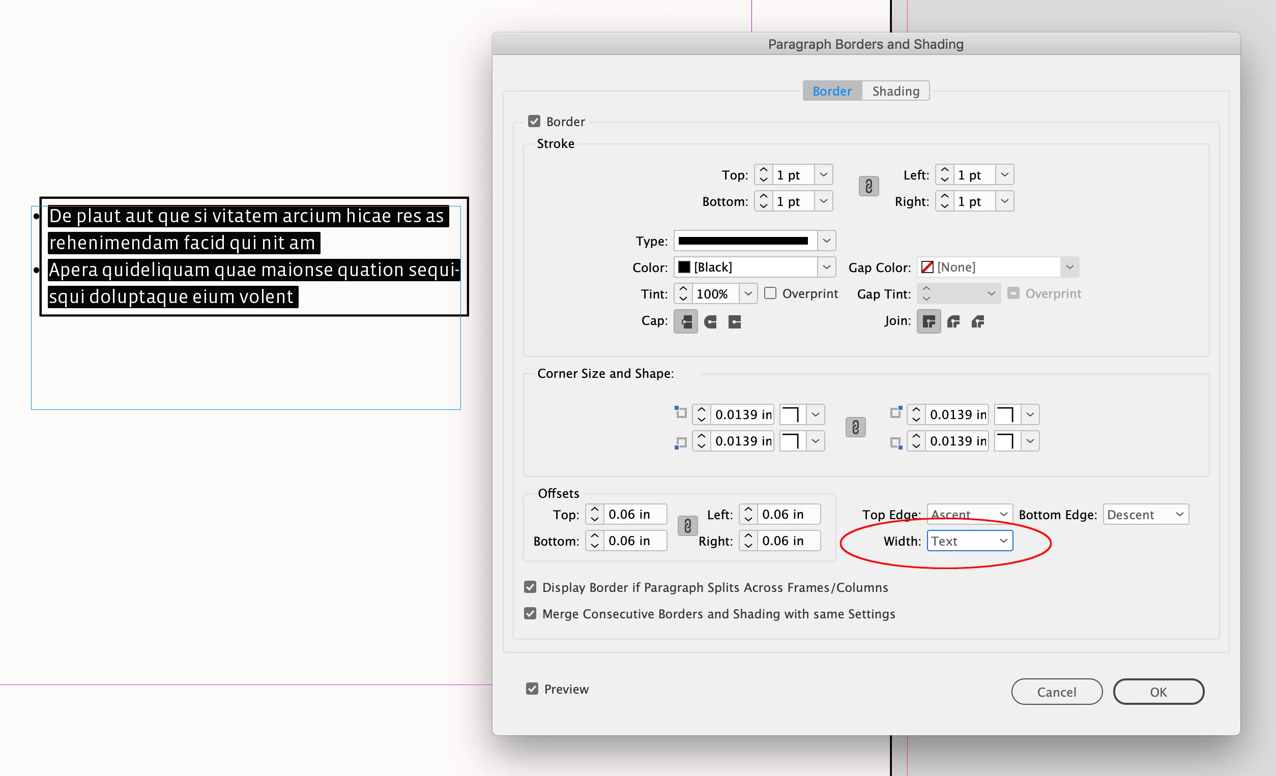 Hi @OscarFromOSI , If you are using Paragraph Borders and Shading to create the border, check the Width setting and make sure it’s not set to Text: