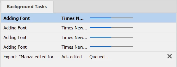 I’m now the latest victim of this. I did “Replace Fonts → select each TNR(OTF) and Replace All with corresponding TNR” and the pink disappeared in the document. But when I tried to export a PDF, it was doing nothing visibly. Then I looked at the Background Tasks and saw that the export was queued behind all the “Adding Font” tasks for both my open documents.