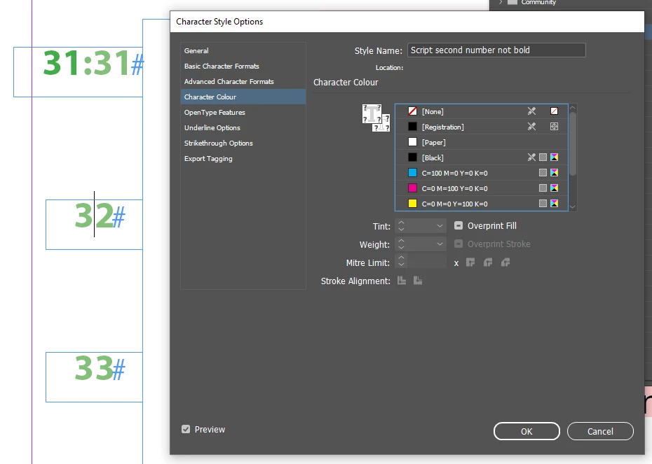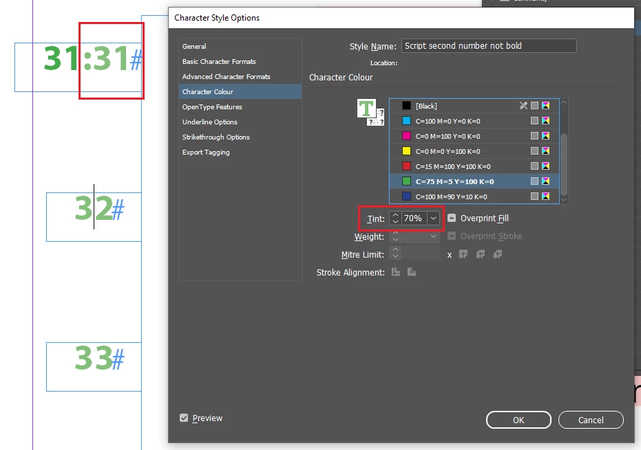 Tint in Character Style bug