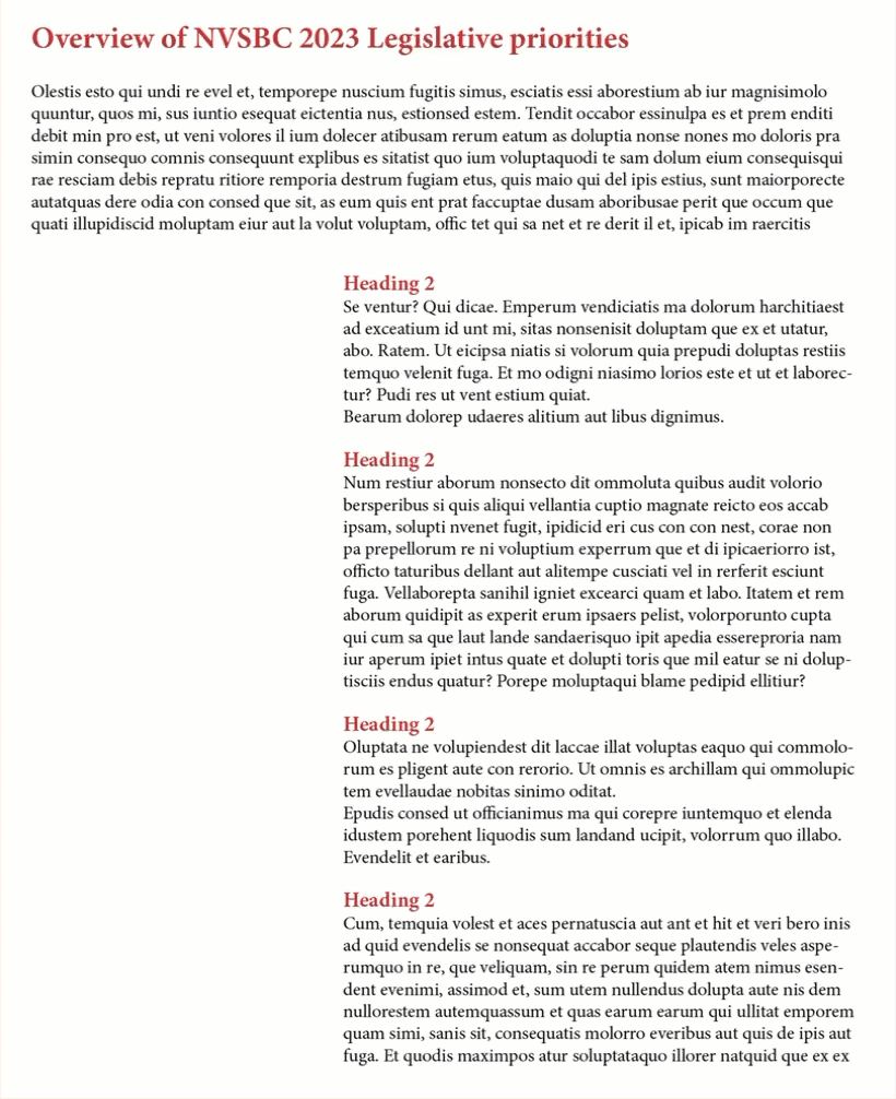 As the clip begins, I'm using threaded frames with the red headings. When I click a frame, you can see the blue lines that connect the frames, and changing one impacts the others. It looks essentially like your layout but because I'm using threaded frames, InDesign can see the exact order of the paragraphs and it copy them in the right order for the table of contents.