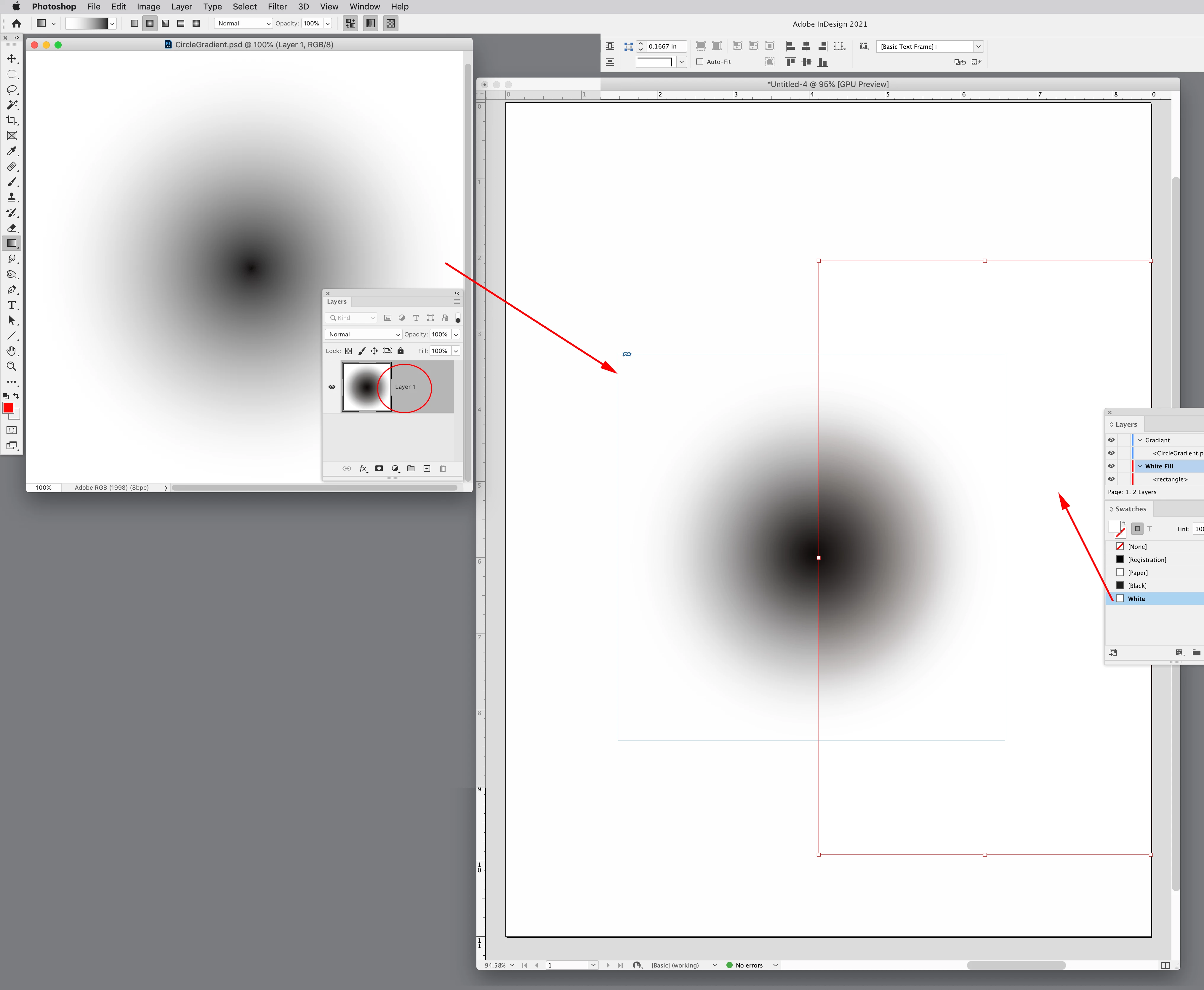 For a book cover, I have created the images in Photoshop but assembled the final thing in InDesign to work with the text more easily. A small part of a scifi character overlaps the book title to add depth, so I need to keep the background graphics and foreground graphics separate so that the title layer can be between them. I didn't think that would be a problem. But the semi-transparent fur of the character, which has highlights to indicate rim light from glowing objects in the background, ends up with dark edges in InDesign (and the resulting PDF), and I can't figure out why or what to do about it.