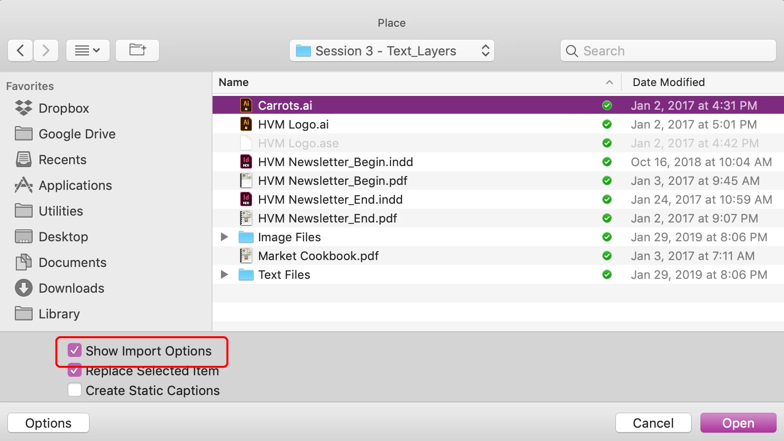 trouble with import options in InDesign