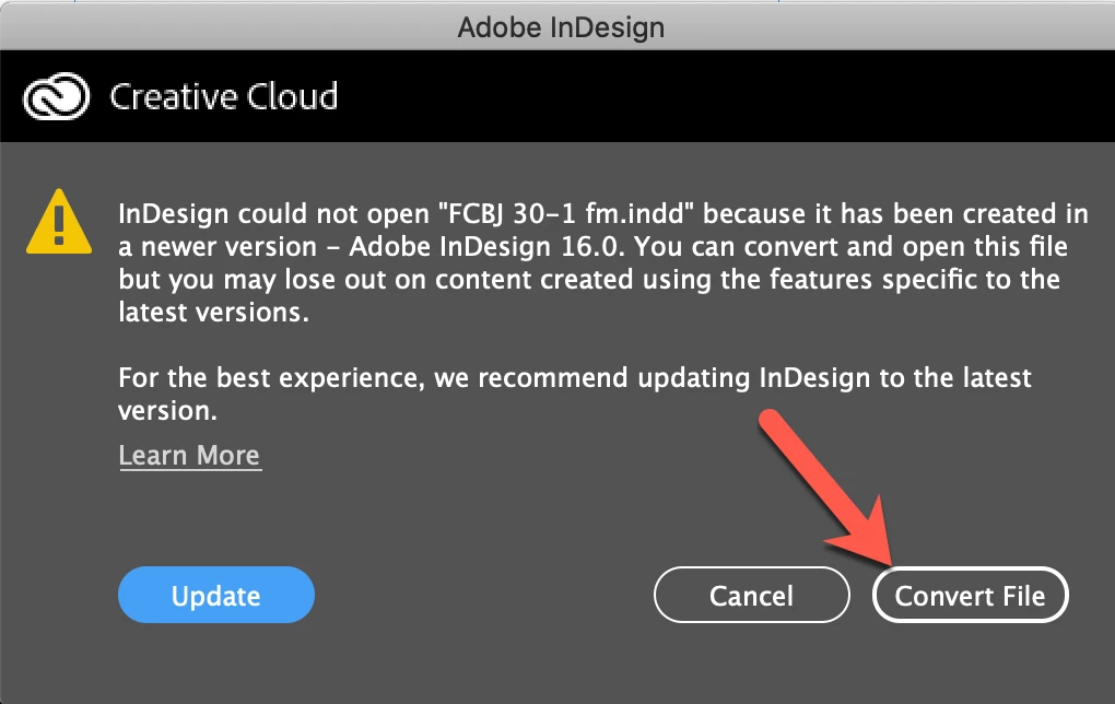 Each time I open a previously created document, I have to be careful to either just use the newer version and continue with it for the future, or choose the older version of InDesign for older documents.
