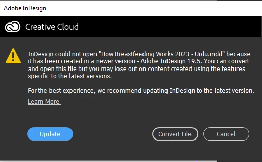 Two versions of InDesign available