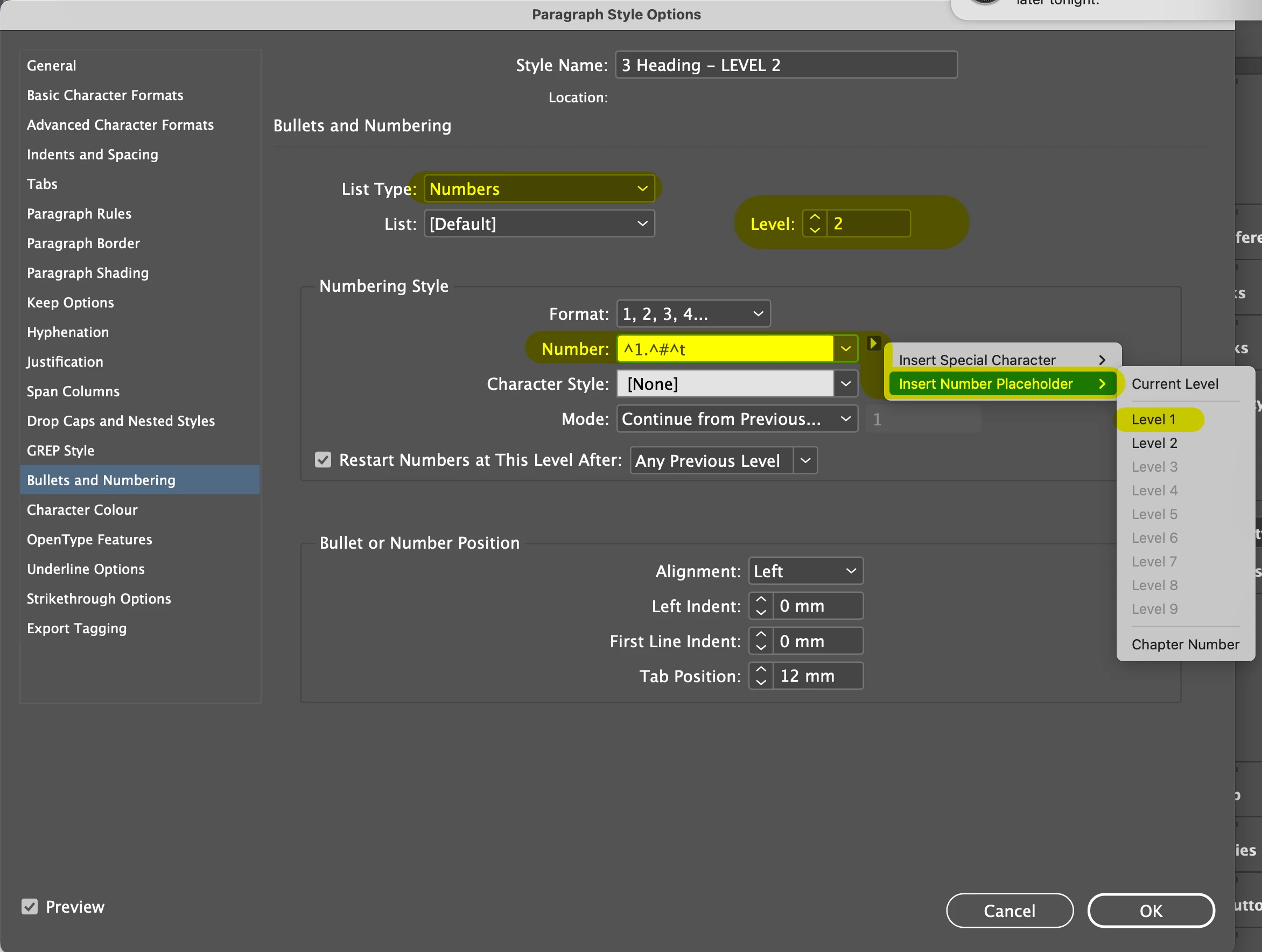 Typography, paragraph styles numbering question