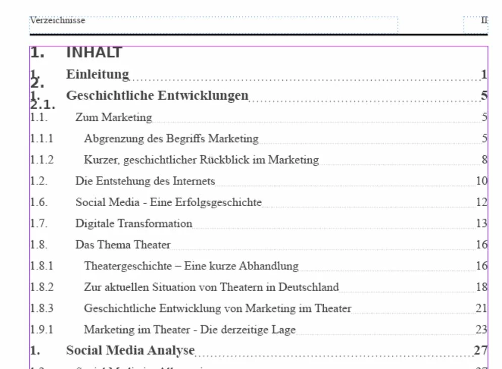 1. Wie unten im Bild zu sehen, tauchen von irgendwo einfach Nummerierung auf ohne dazugehörigen Titel, die nicht mit einem Absatformat versehen sind (gemeint sind die 1., 2. und 2.1, die zwischen die Zeilen gerutscht sind9