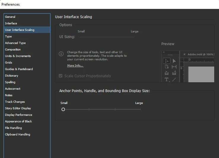 Ui Sizing option on InDesign not working