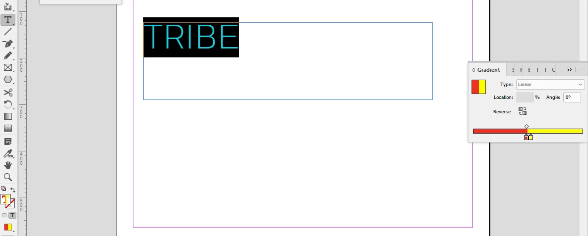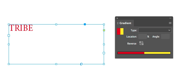 I am meaning to apply a gradient effect to my selected text - the word TRIBE.