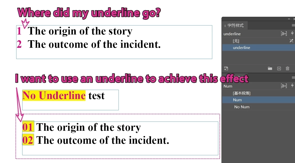 Unable to Apply Underline Styling to Numbered List Markers in InDesign