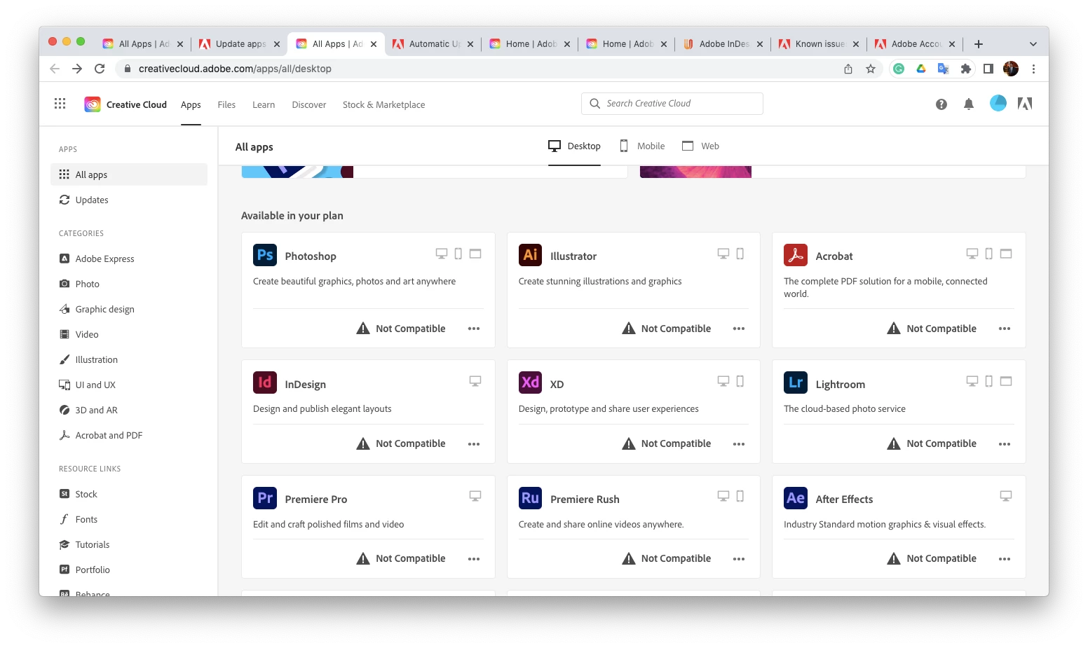 unable to download indesign from creative cloud for mac os 10.14 mojave