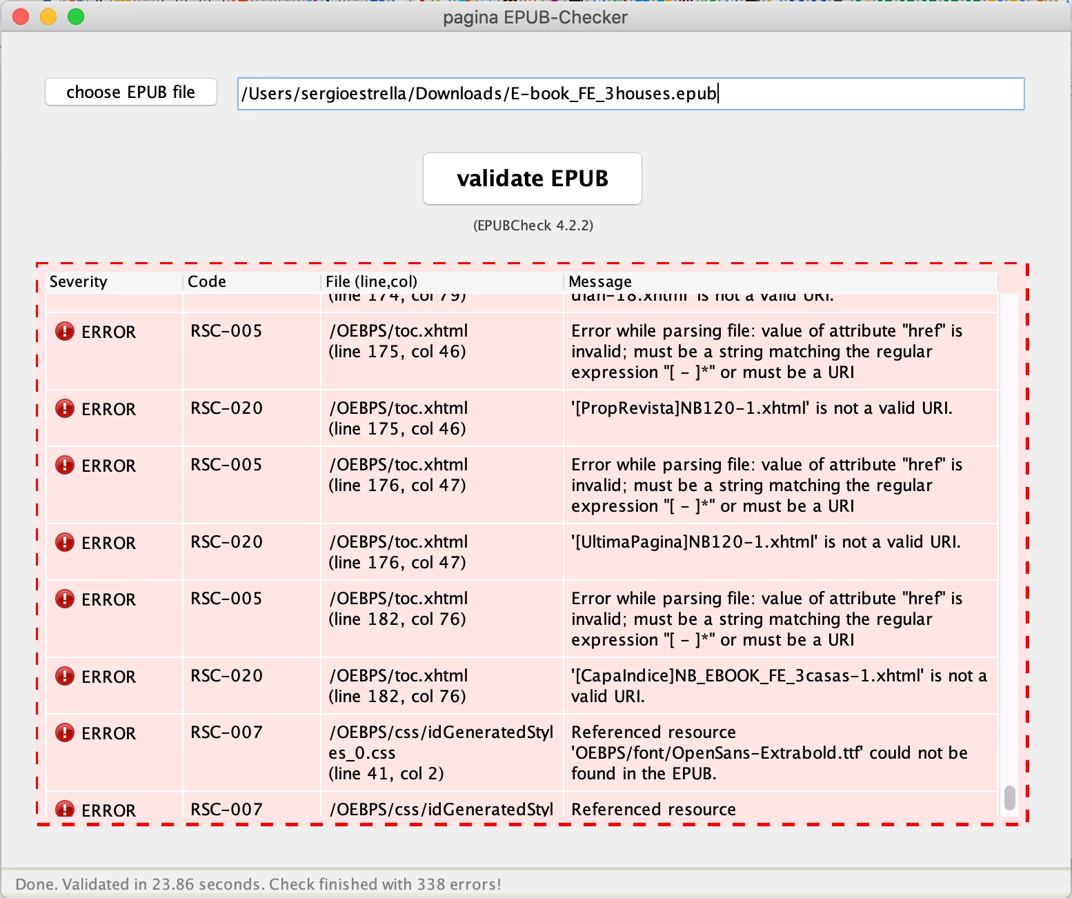 Apple asked me to contact Adobe support, but the person that I contact didn't have any idea about this and just sent me some unrelated Adobe Help links, and in the end said that its a problem with the platform I'm trying to upload the EPUB. Apple also asked me to check the file with the EPUB Checker app, and it displayed the same errors I mentioned before (screenshot attached). So although the file can be viewed perfectly in epub readers installed locally, it definitely looks like InDesign is generating an invalid EPUB file that cannot be uploaded to stores. Unfortunately I couldn't find any information elsewhere that helped me with this, so I ask for your help.