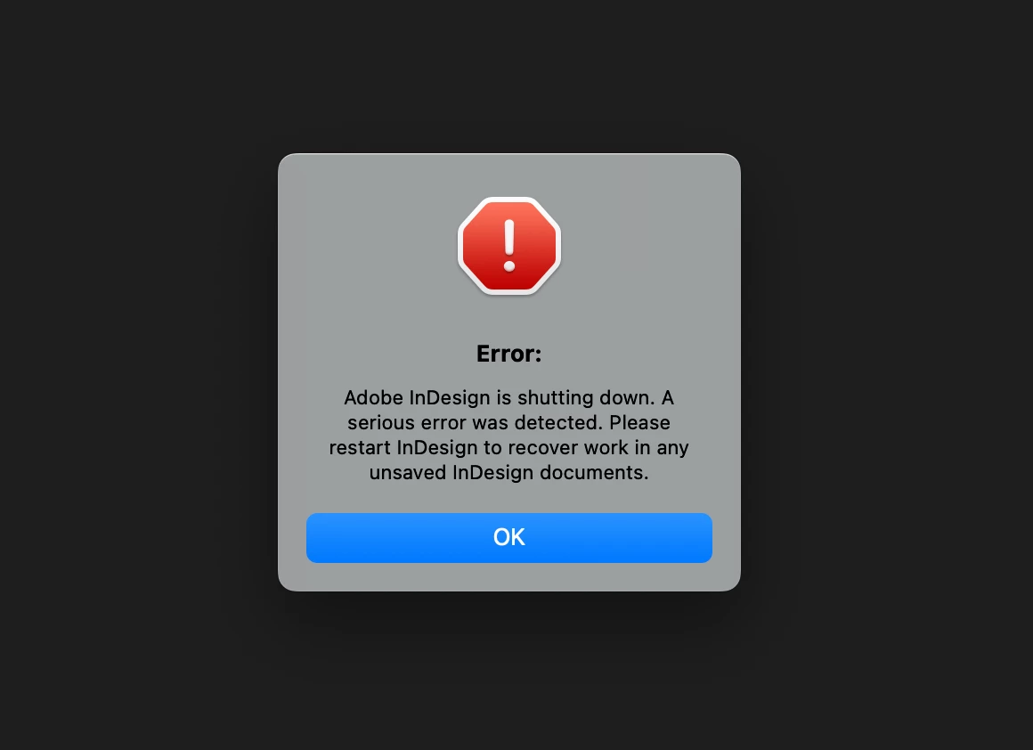 Every time I try to open the local file, InDesign crashes and shuts down immediately.