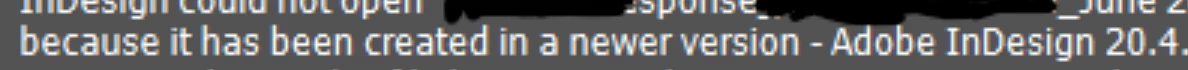 Thanks for reaching out, and I'm sorry to hear you're facing this issue. From the error message, it seems you might be on an older version than 20.4, which is likely why you're seeing this prompt. Could you please confirm your exact InDesign version by going to Help > About InDesign, as well as your operating system details?