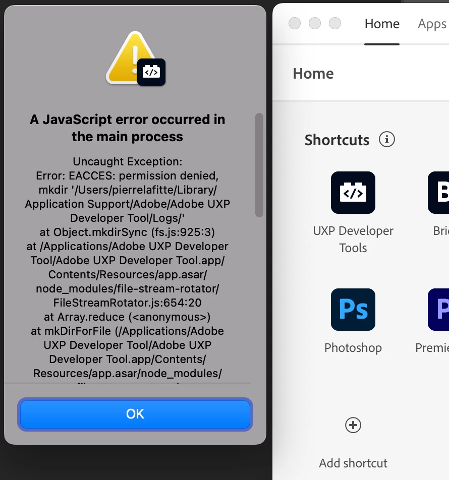I want to get interested in Scripting, and I read on the docs that I should use UXP Developer Tools, but I cannot even open it. When I click the link in the CreativeCloud app, it shows an EACCESS error in a popup.