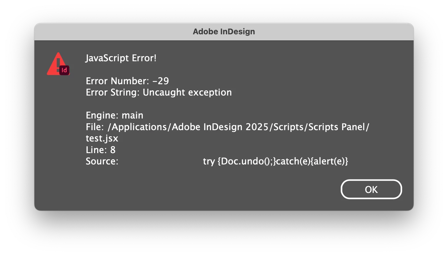undo() - uncaught exception (-29) error