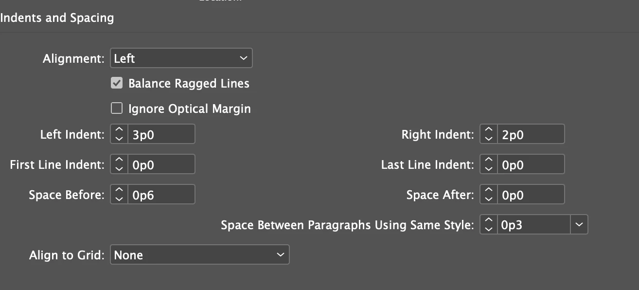 I have tried several different ioptions. I thought it might be related to indents and spacing but that doesn't seem to help either: